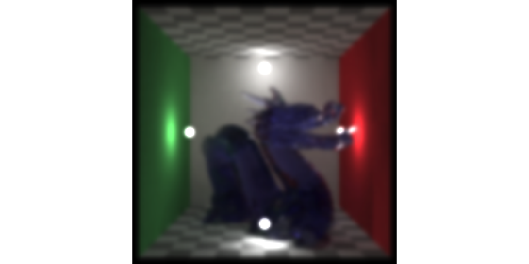 render_bokeh(dragon, dragondepth, focus = 1300, focallength = 250)