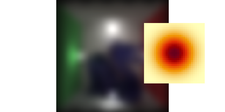 render_convolution(kernel = generate_2d_gaussian(sd = 1, dim = 31)) |>